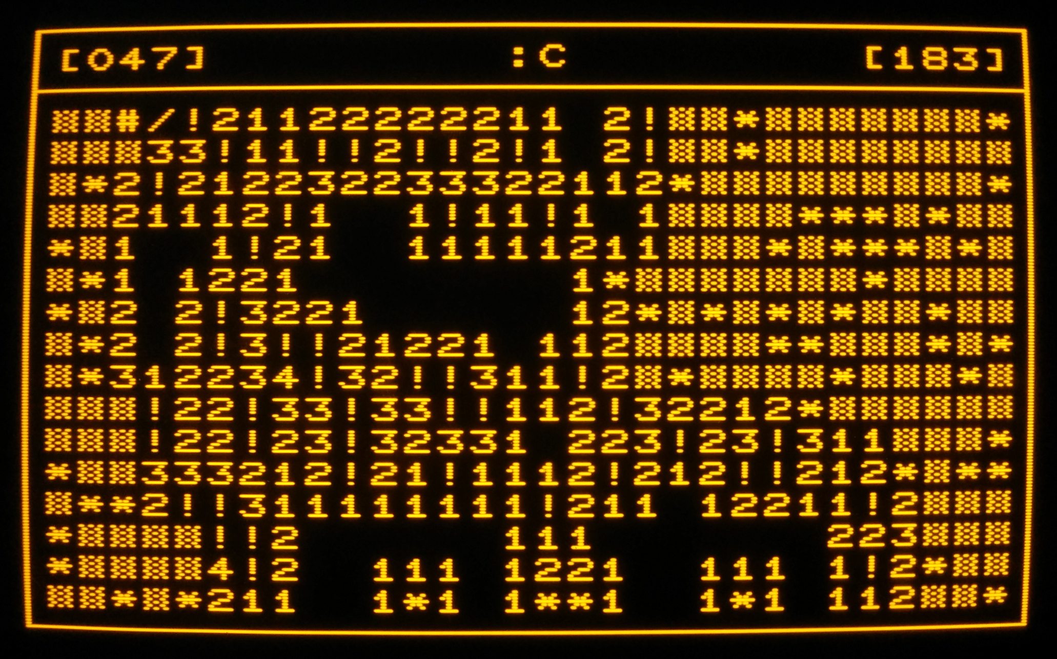 And here is (a slightly older version of) the -d mode - running on my 1987 DEC VT220. A higher resolution version is here - you can even see the scan lines there!
